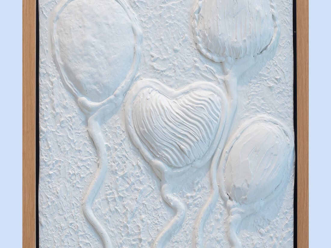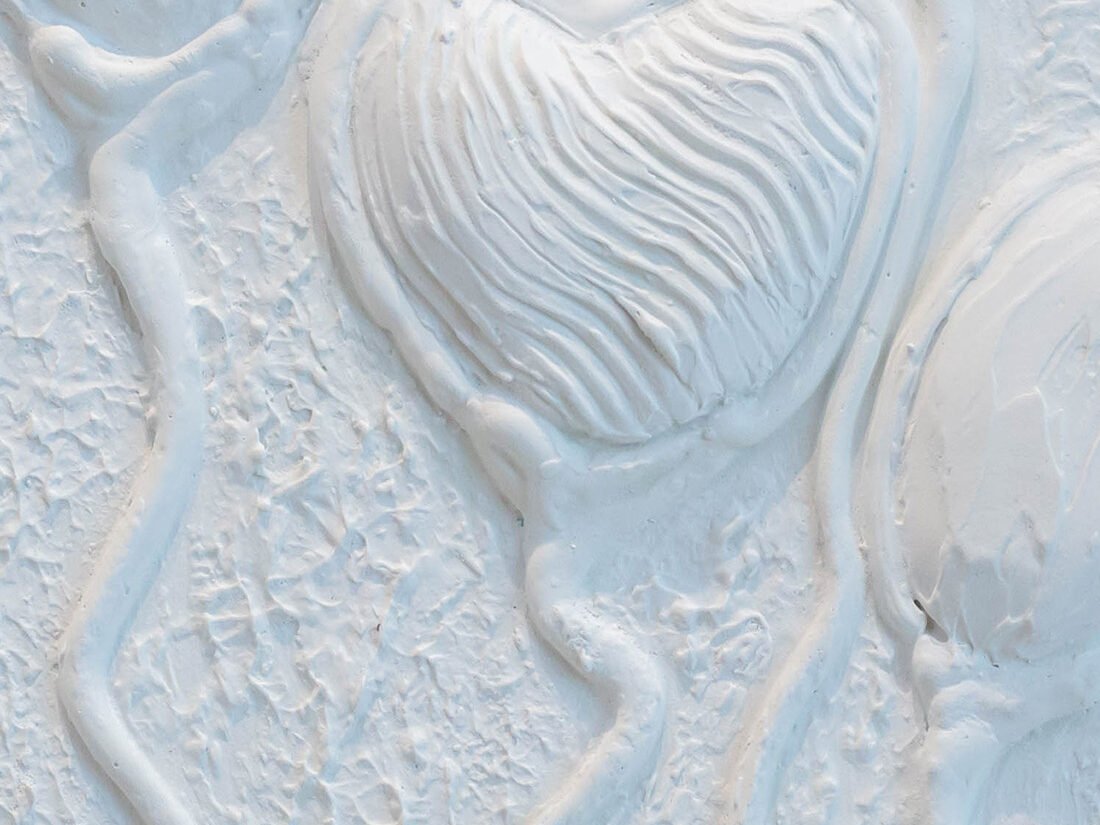 Media: Paper mache, gypsum paste, and acrylic